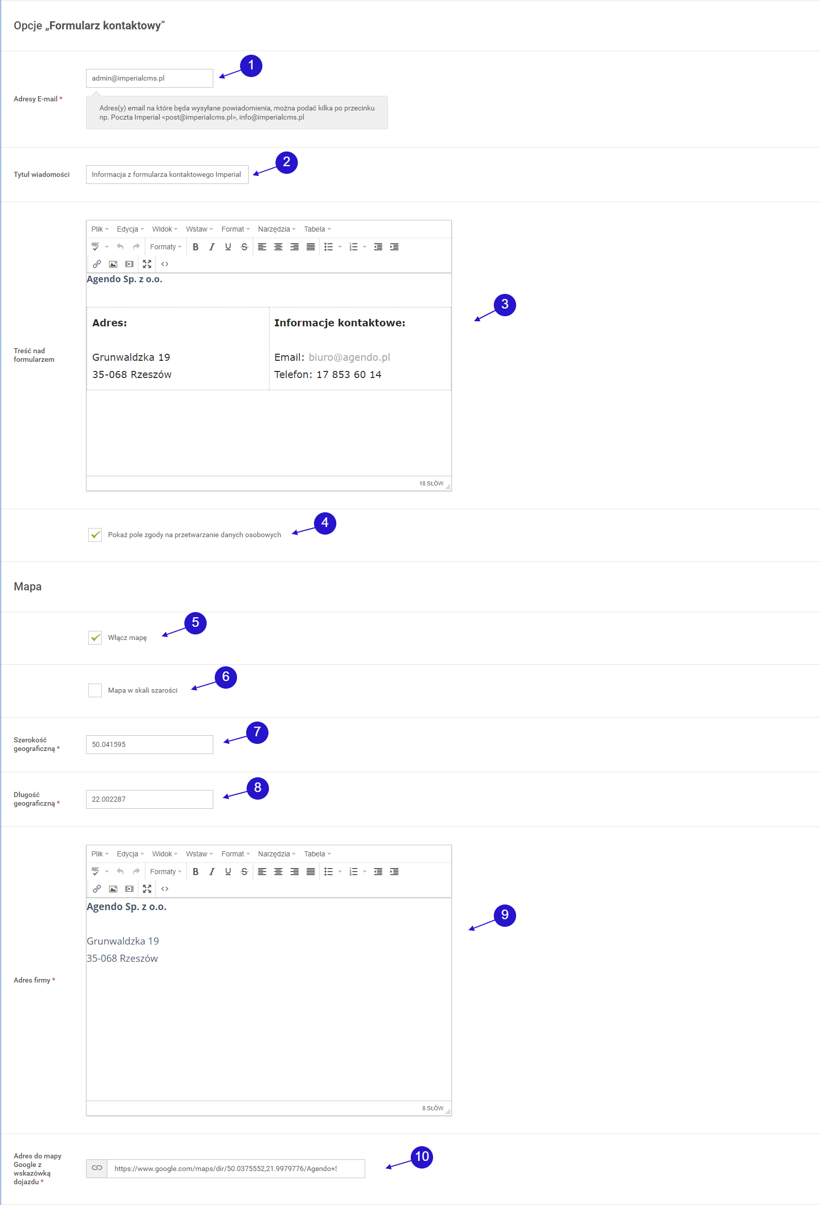 Określenie, czy przed formularzem kontaktowym powinna być wyświetlona mapa.