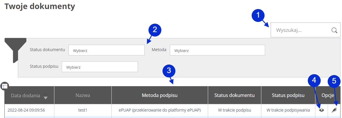 Ikona podpisu przenosząca do formularza podpisu dokumentu.