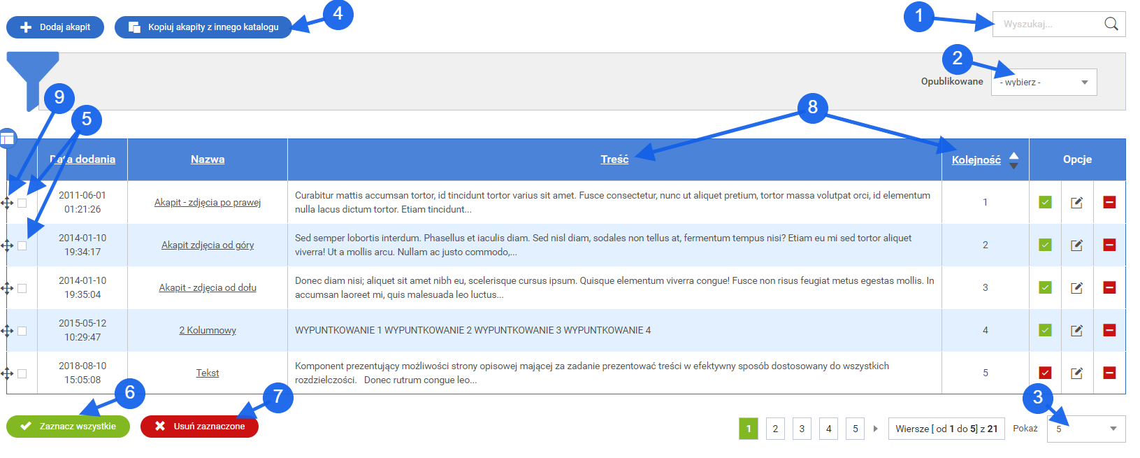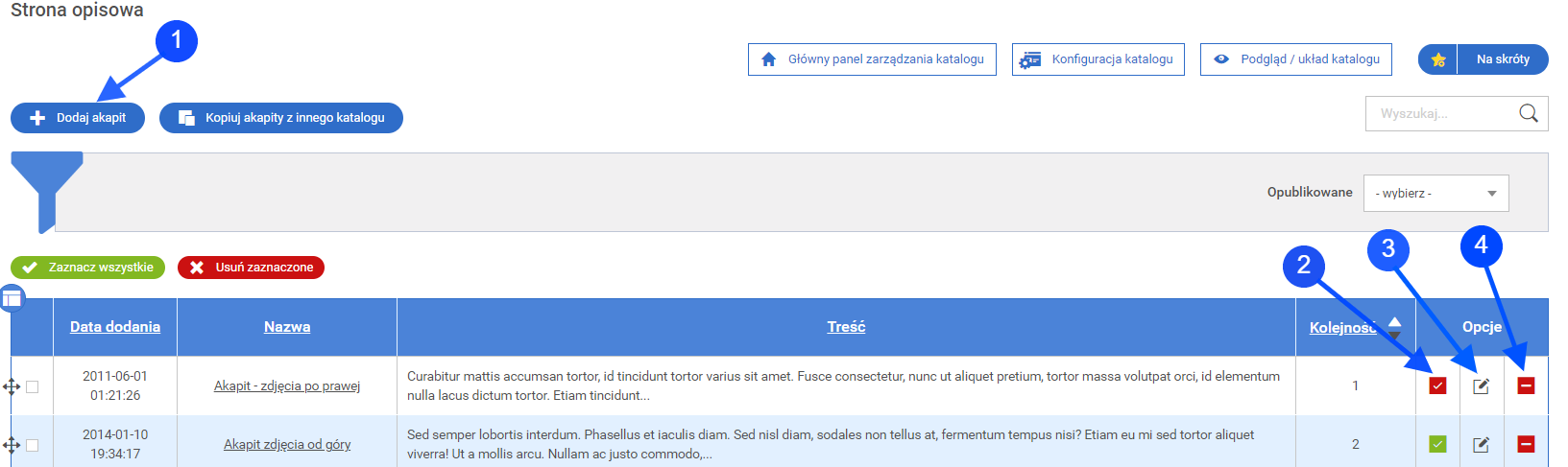 2. 2Filtrowanie akapitów opublikowanych/nieopublikowanych.