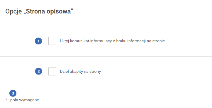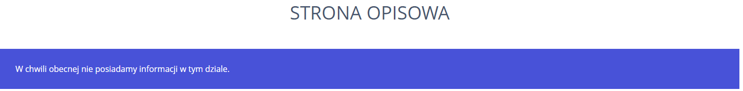 Stosując stronę opisową możemy zamieścić w niej dowolną treść korzystając z dostępnych szablonów. Służy do tworzenia nieskomplikowanych podstron. Mamy możliwość dodawania zdjęć, wideo, załączników (PDF, Prezentacji Multimedialnych) oraz korzystania z edytora HTML.
