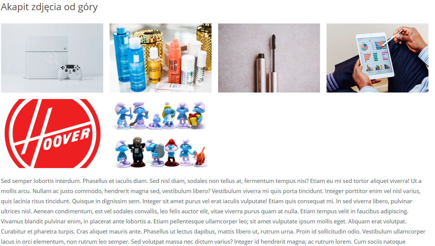 Układ, w którym zapisujemy treść, a zdjęcia dodane w zakładce "Zdjęcia", będą wyświetlane od góry względem tekstu.