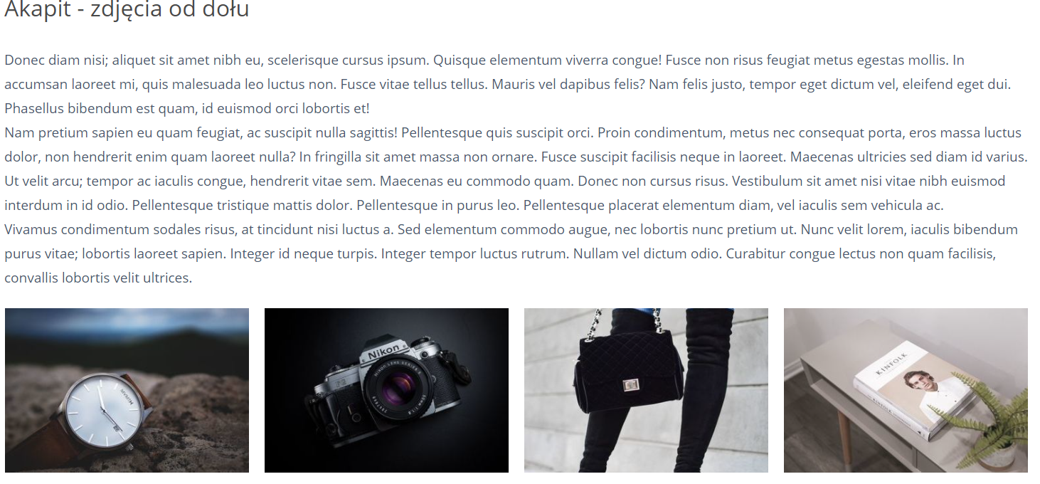 Układ, w którym zapisujemy treść, a zdjęcia dodane w zakładce "Zdjęcia", będą wyświetlane od dołu względem tekstu.