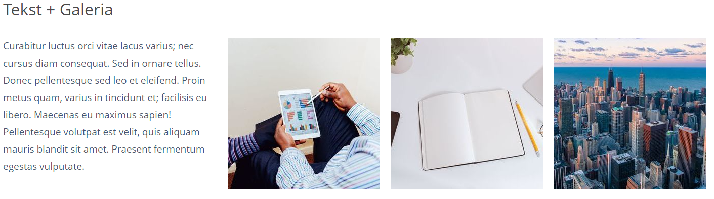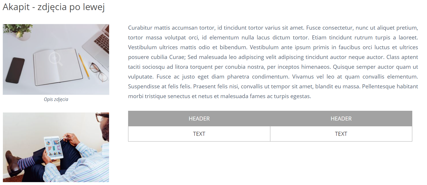 Układ, w którym tekst wyświetlamy po lewej stronie, a po prawej stronie galerie zdjęć, dodaną za pomocą zakładki "zdjęcia".