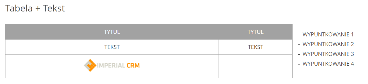 Układ, w którym tabela wyświetlana jest po lewej stronie, a po prawej stronie tekst.