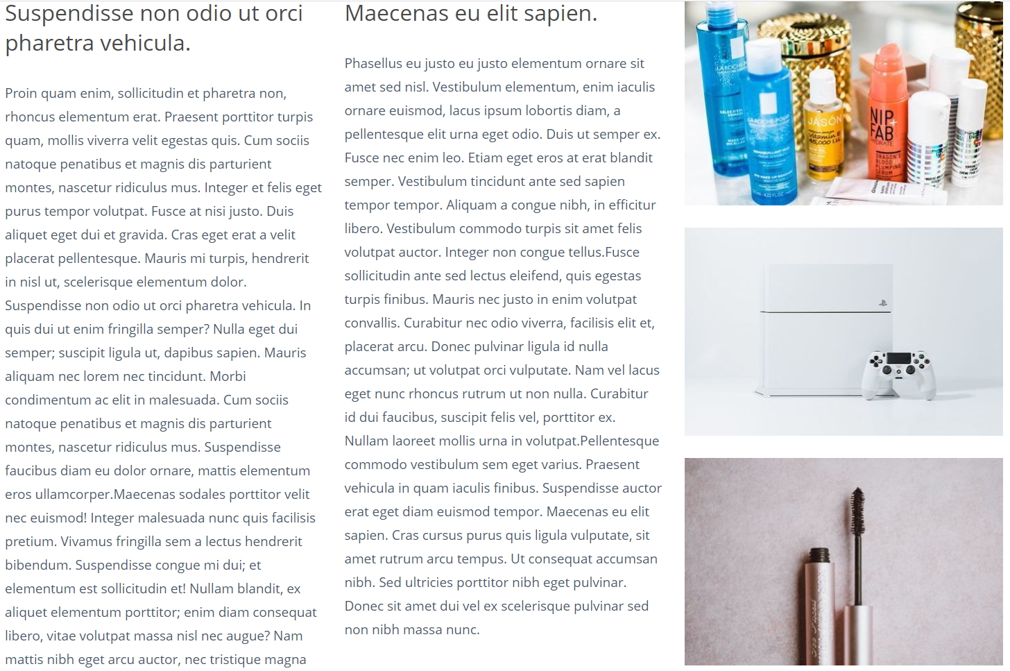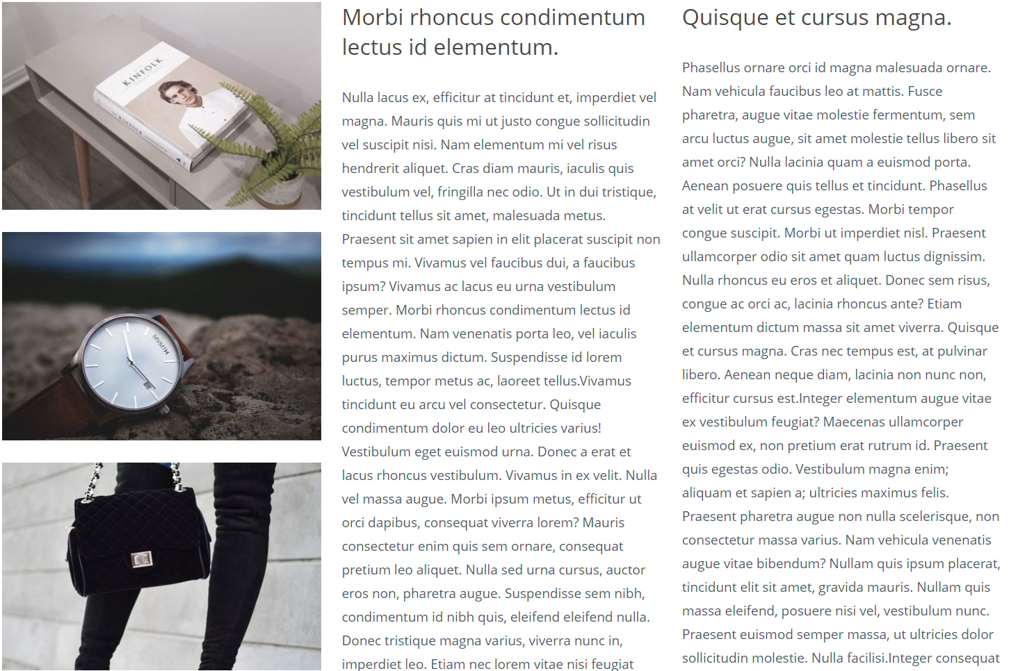Układ, w którym treść wyświetlana jest w trzech kolumnach, w pierwszej i ostatniej teskt, zaś w środkowej kolumnie zdjęcie dodane poprzez zakładkę "zdjęcia".