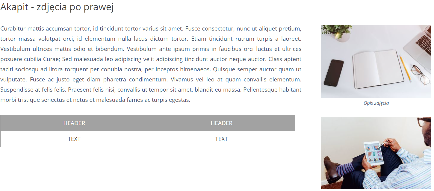 Układ, w którym zapisujemy treść, a zdjęcia dodane w zakładce "Zdjęcia", będą wyświetlane po prawej stronie względem tekstu.