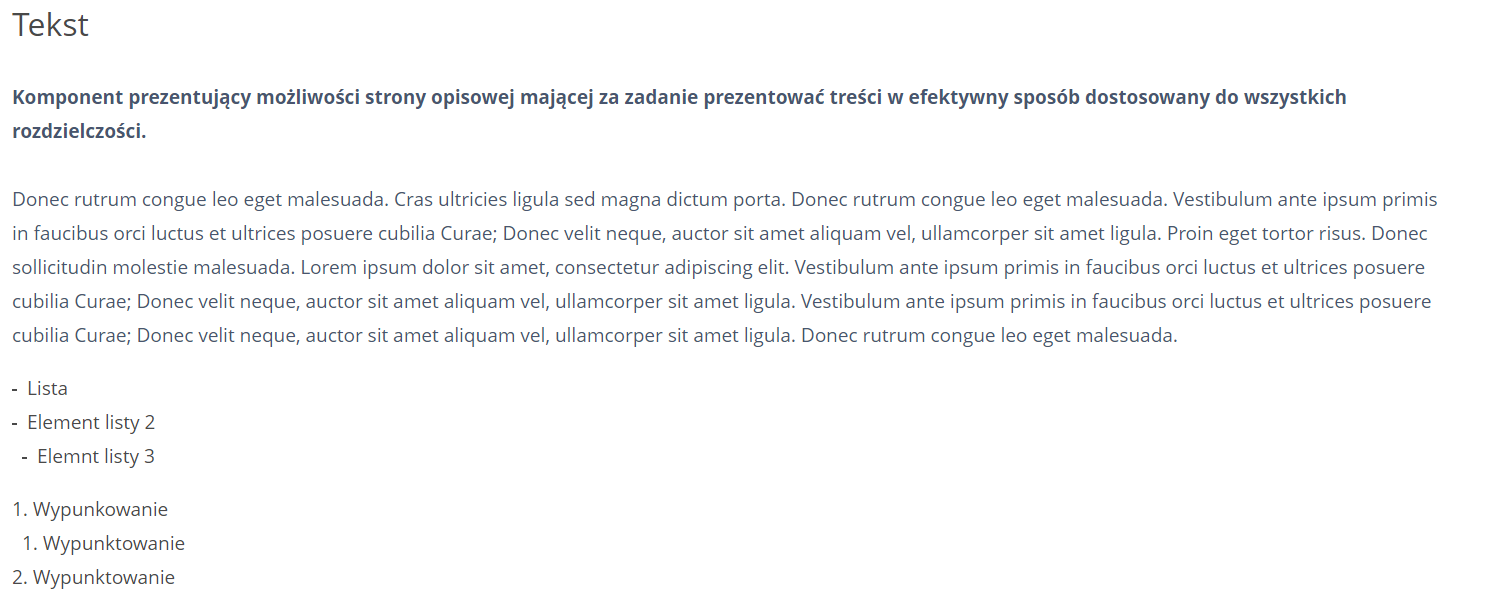Układ zawierający tylko tekst. Oczywiście za pomocą dostępnego edytora HTML jest możliwośc dodania tabeli, list punktowanych,załączników zdjęć itp.