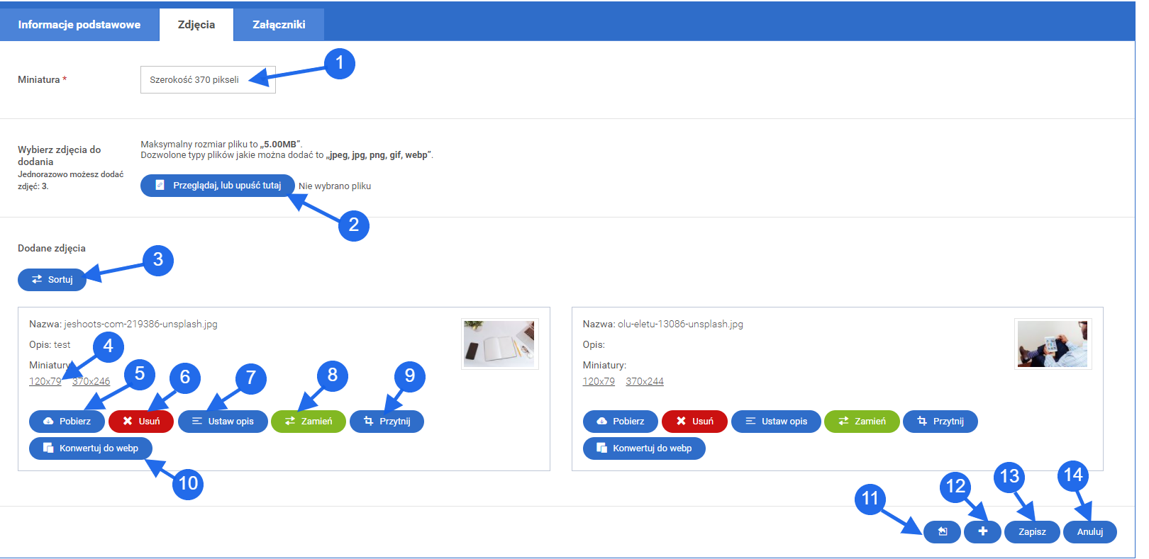 1. 1Możliwość wyboru szerokości miniaturki dodawanego zdjęcia.