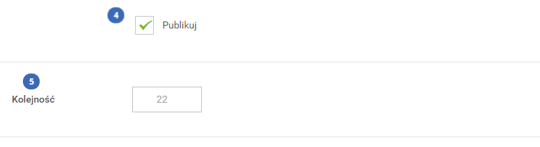 Checkbox 'Publikuj' - czy treść ma zostać opublikowana (widoczna na stronie).