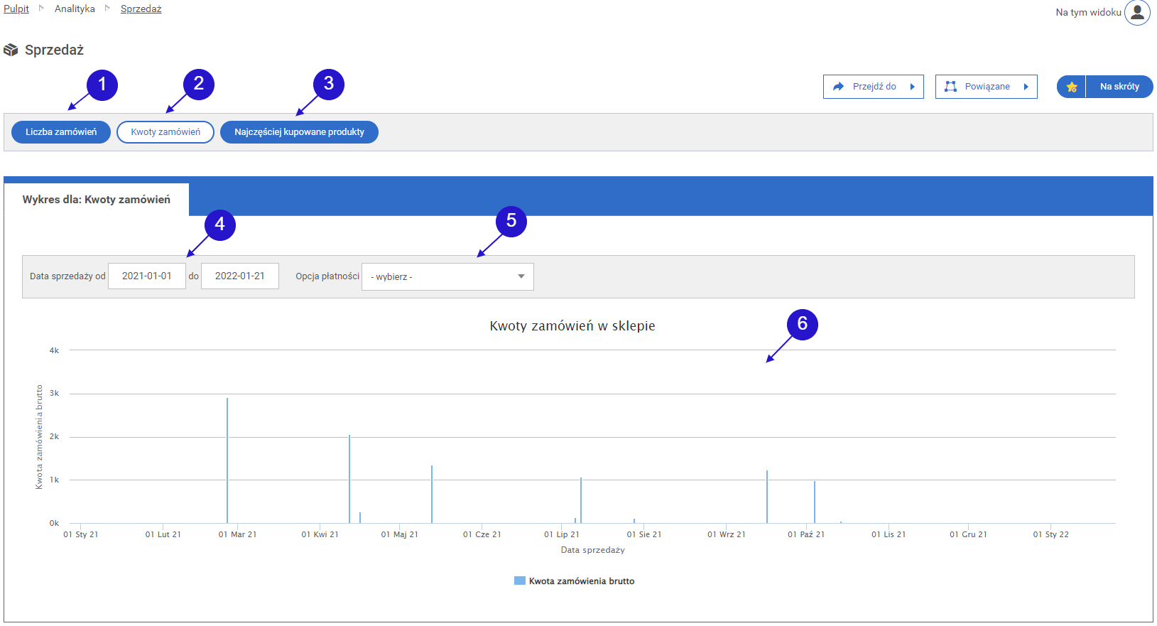 Miejsce, w którym należy wybrać przedział dat, z którego będą wyświetlone kwoty zamówień na wykresie.