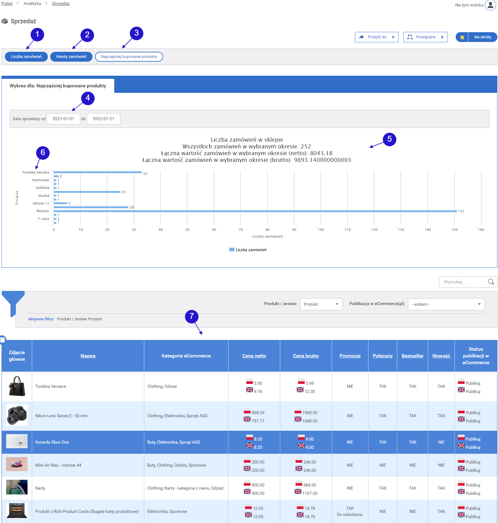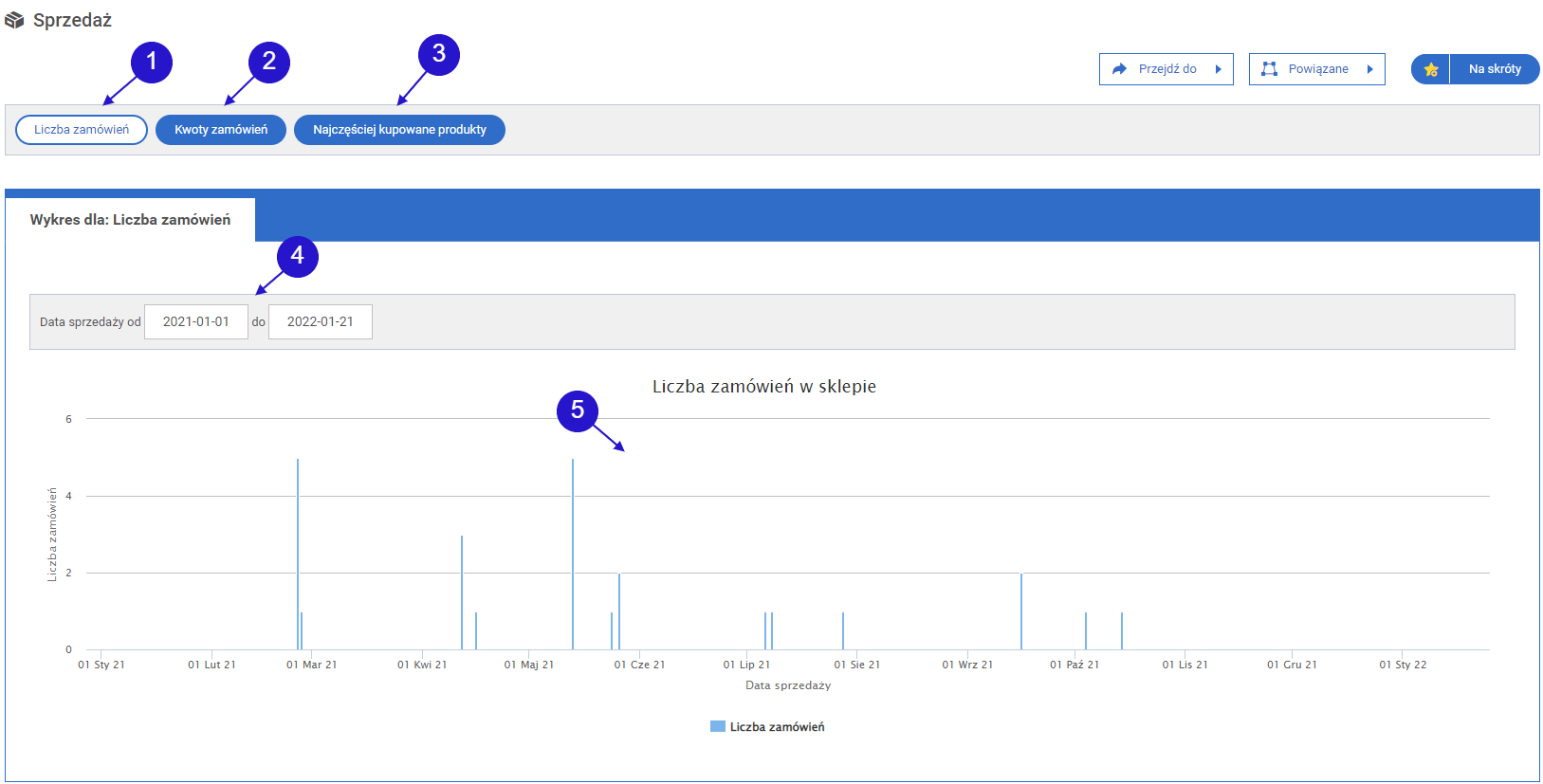 Przycisk przenoszący do zadkładki "Liczba zamówień".