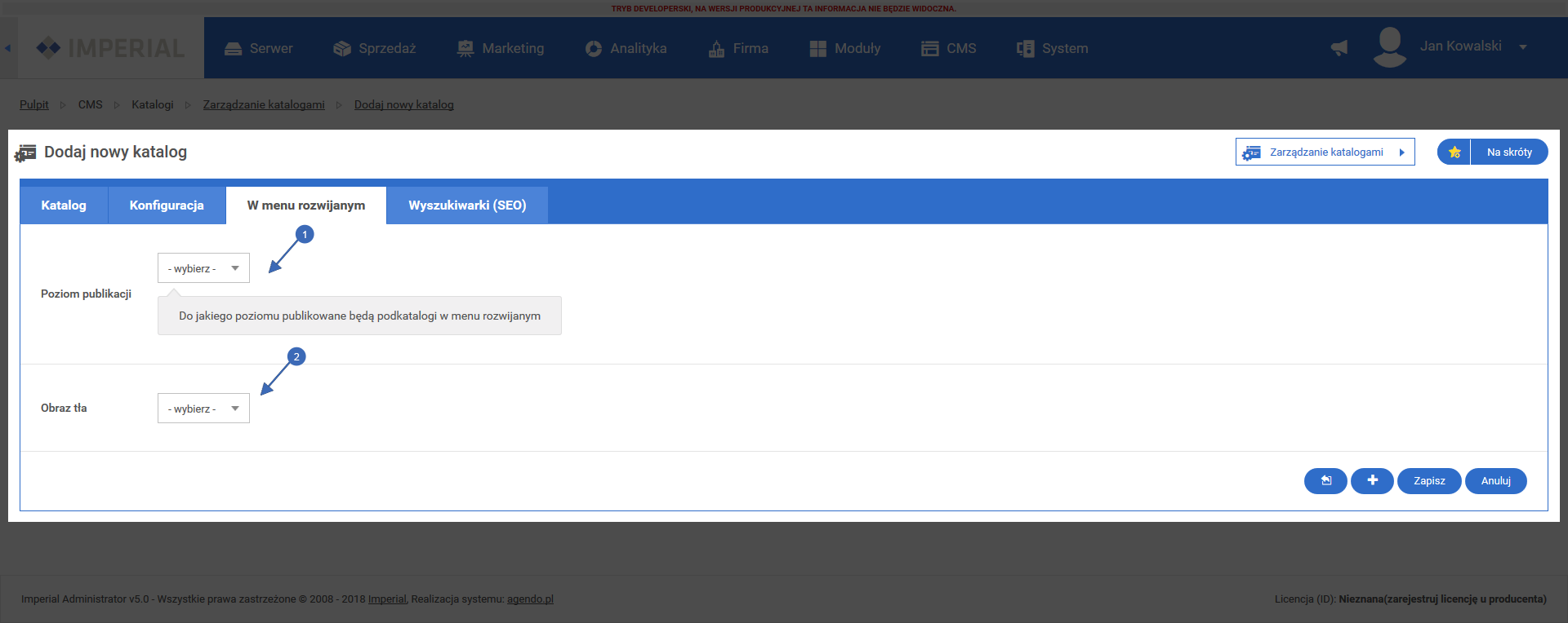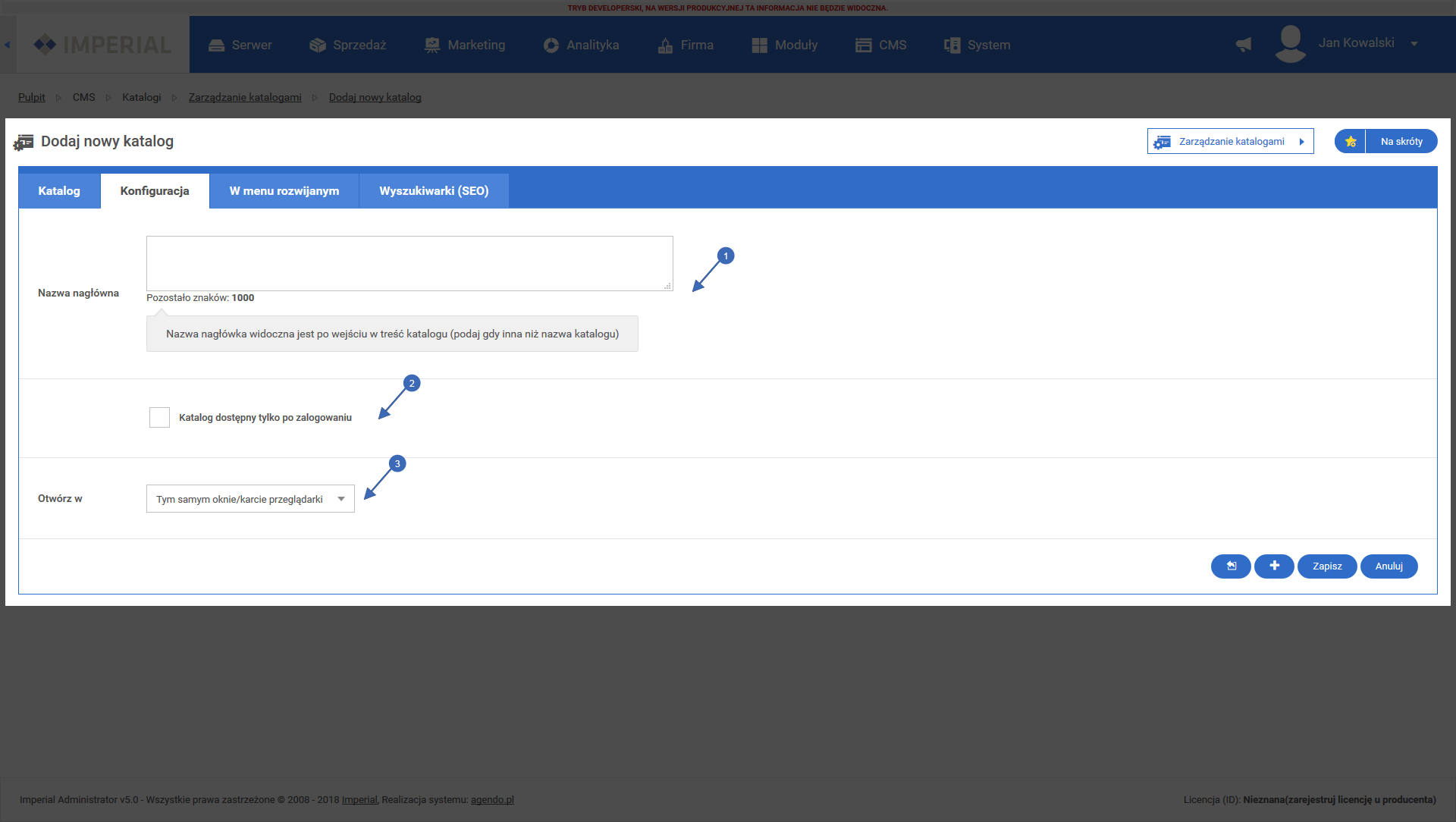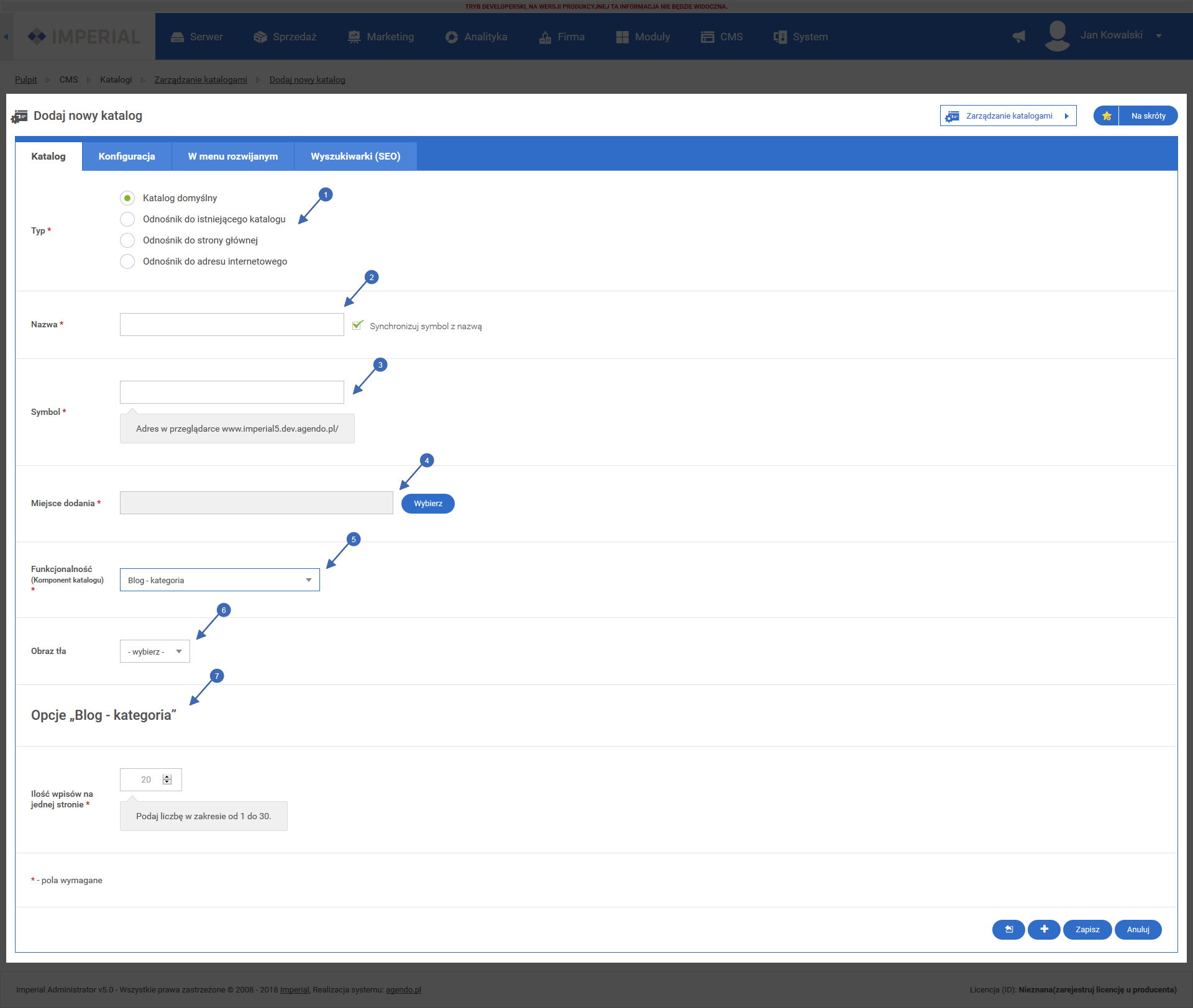 Katalogi dodajemy korzystając z opcji Dodaj nowy katalog uzupełniając wyświetlony formularz: