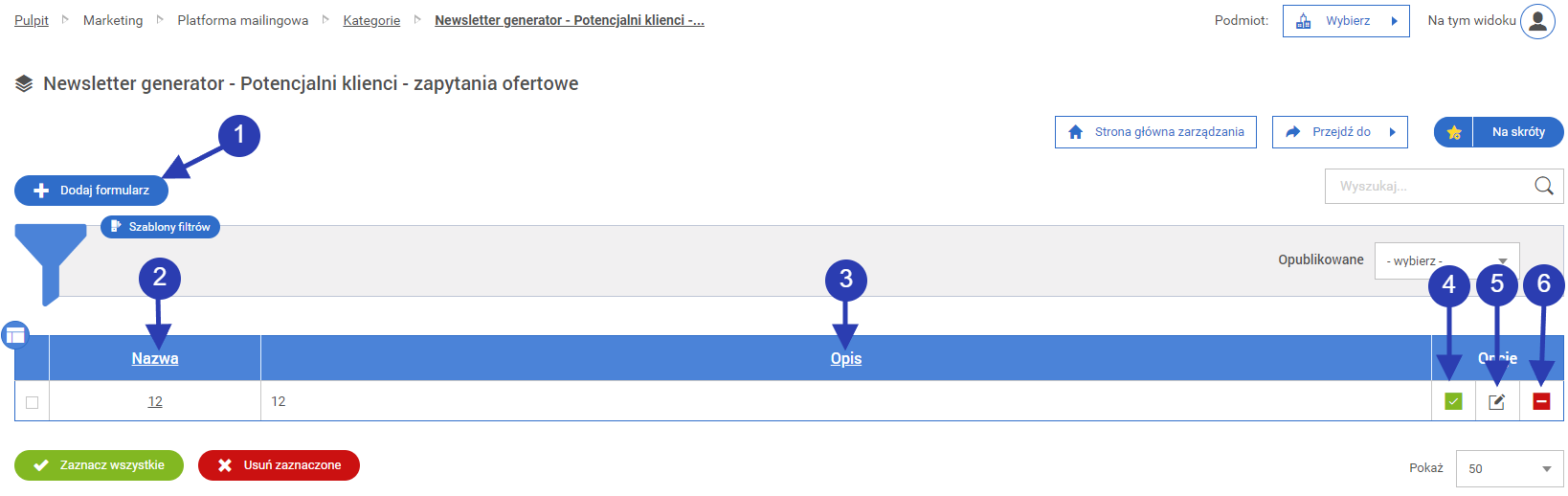 Zaznaczenie spowoduje publikację kategorii newslettera.