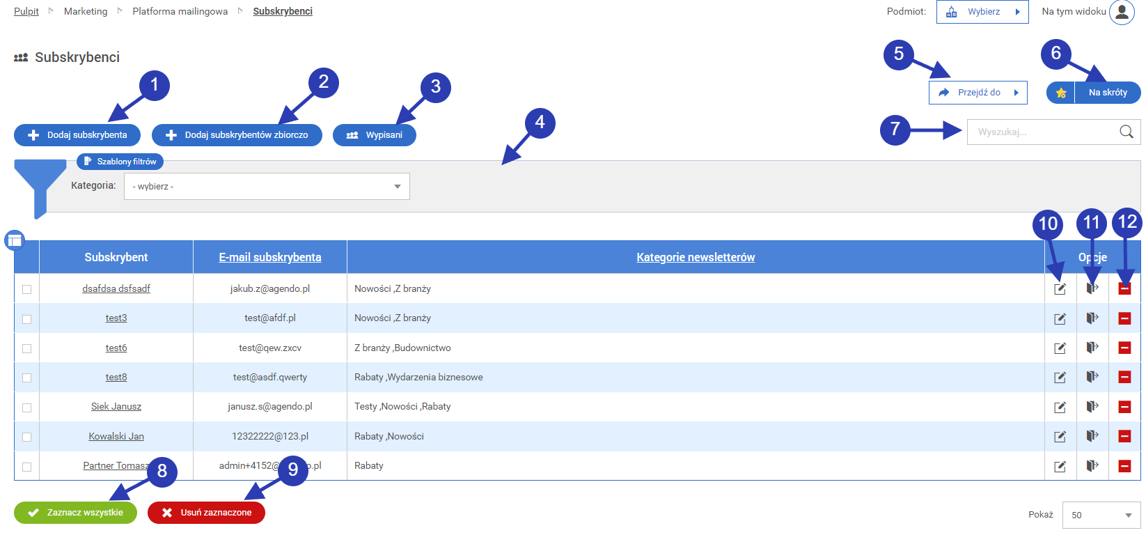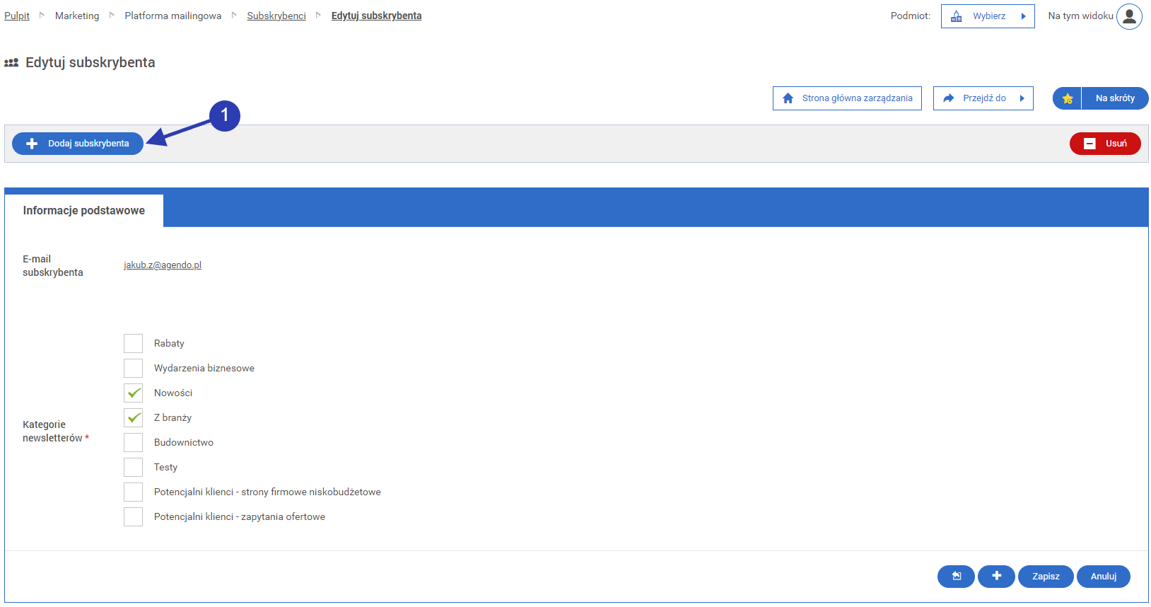 • 1.3. Edycja istniejącego subskrybenta