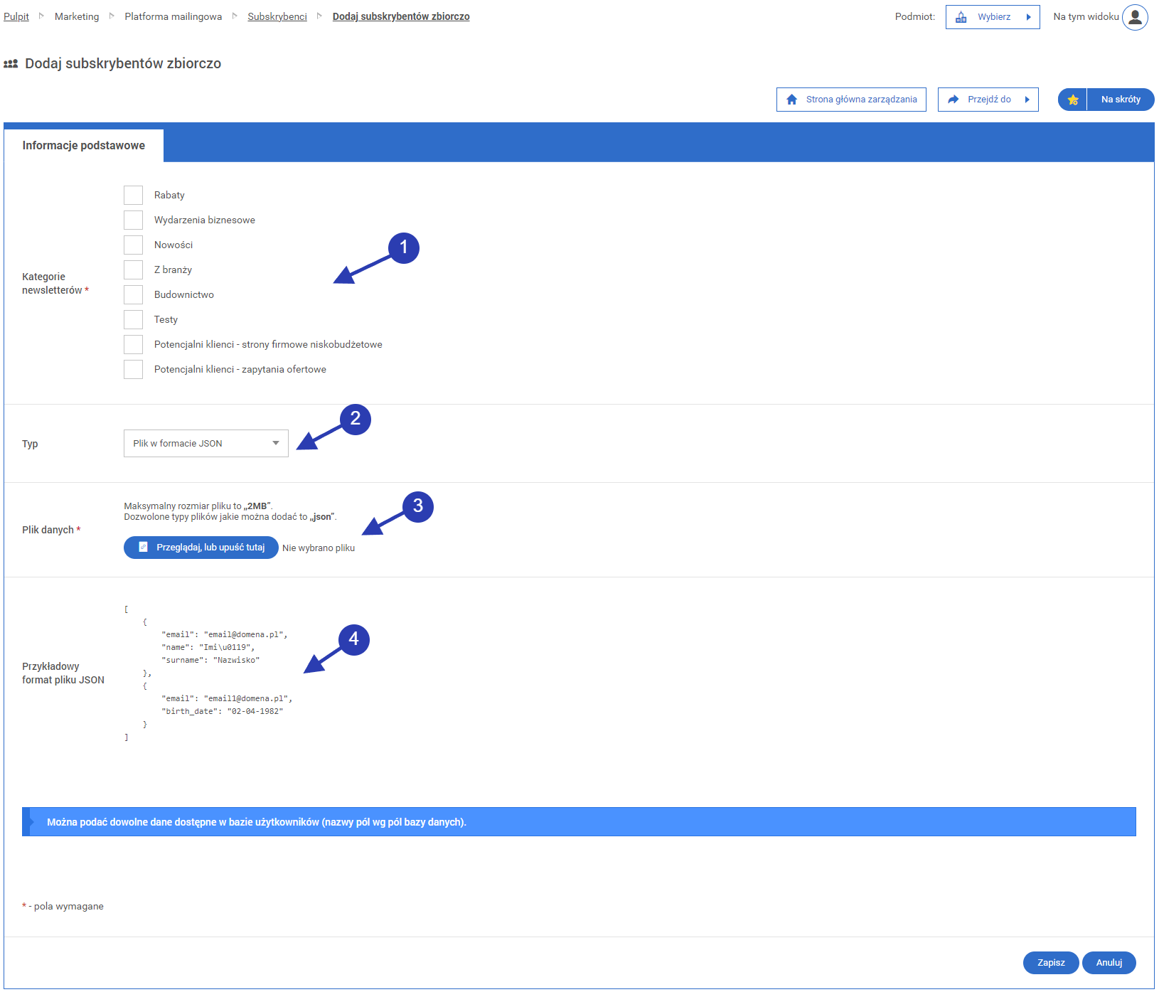 • 1.4. Dodawanie nowych subskrybentów zbiorczo