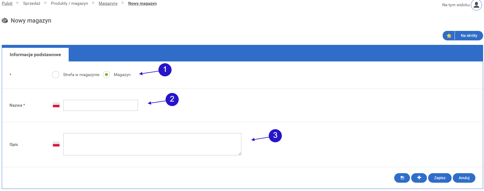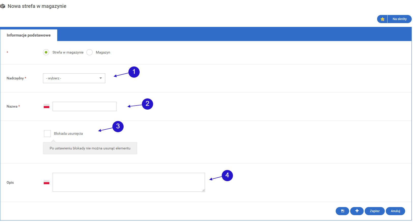 • 1.1.2. Ekran tworzenia magazynu/strefy w magazynie