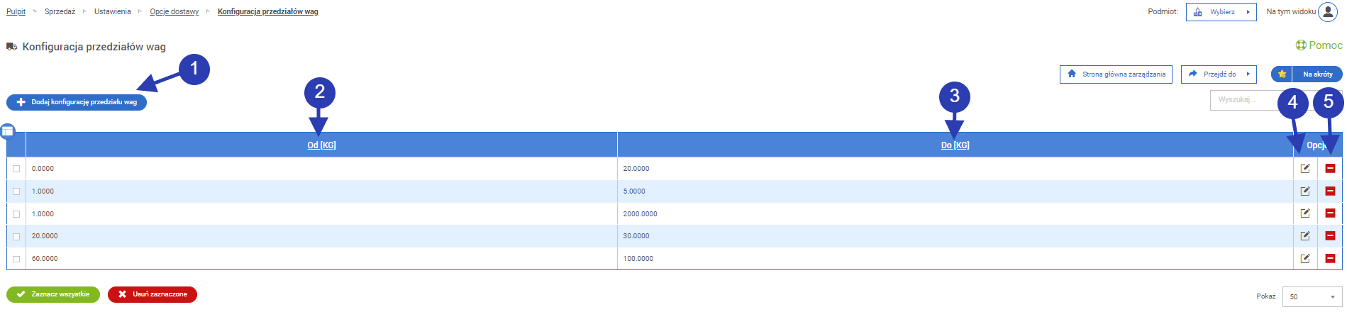 Przycisk umożliwiający dodanie i skonfigurowanie nowego przedziału wag.