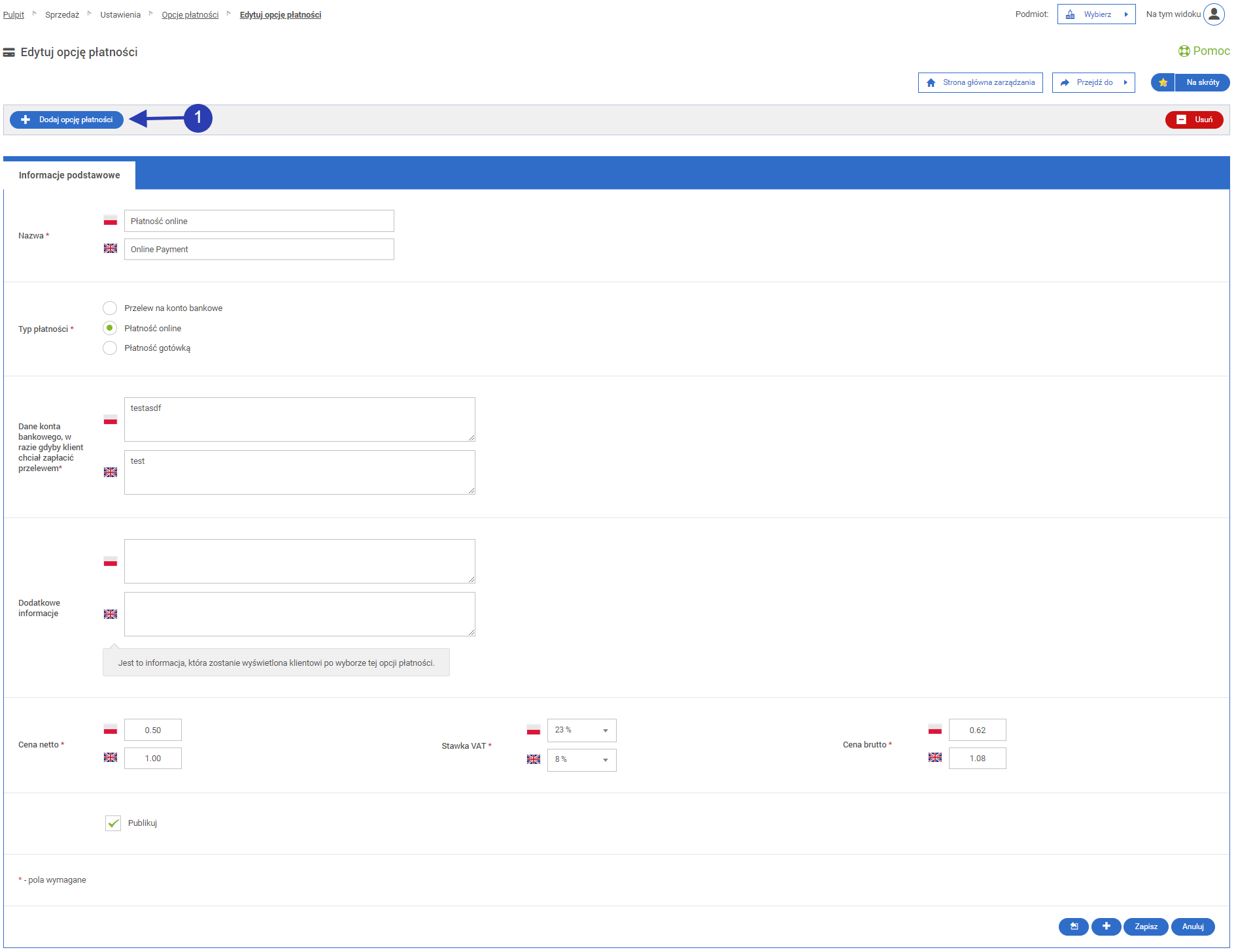 • 1.1.3. Ekran edycji istniejącej opcji płatności