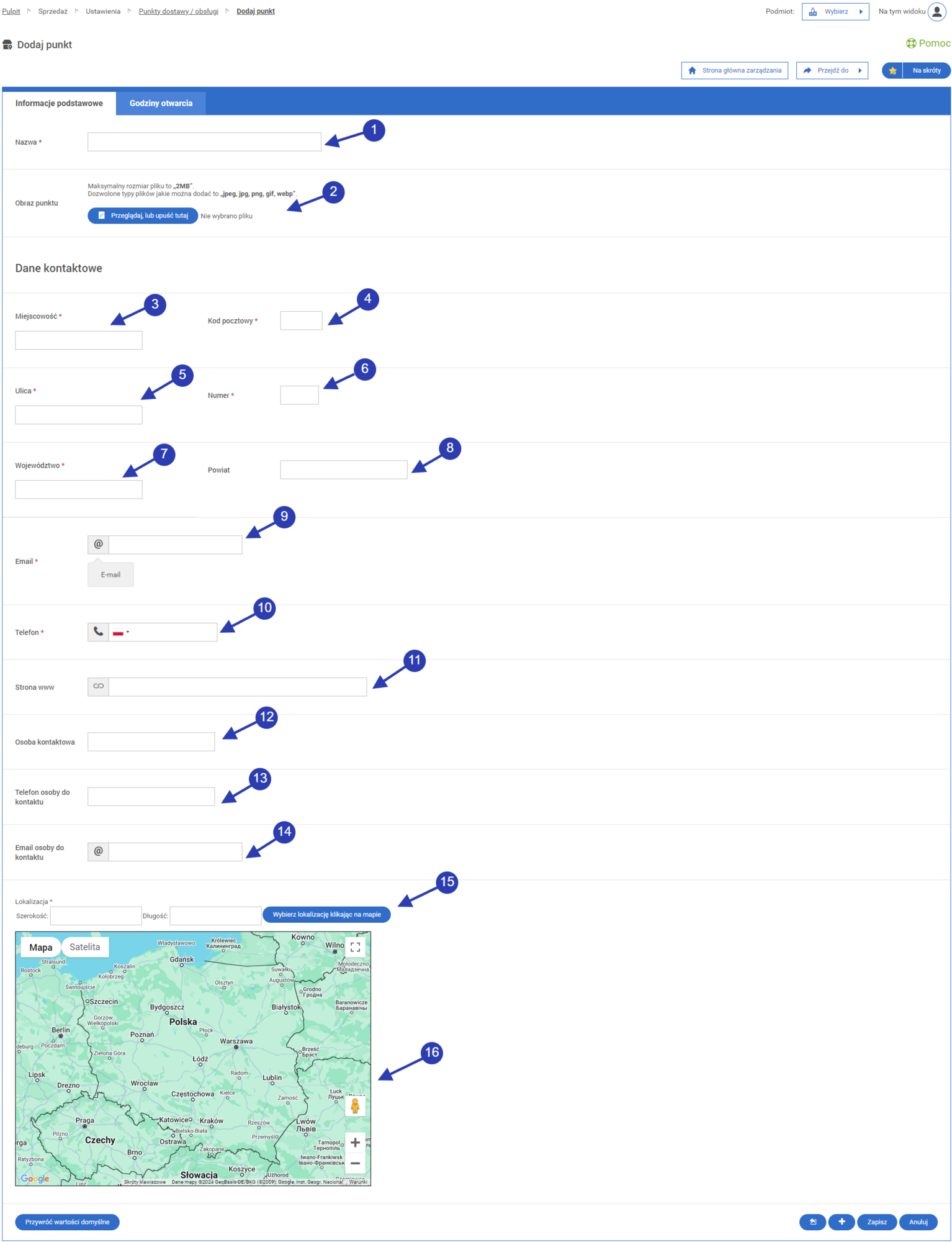 • 1.1.2. Ekran tworzenia nowego punktu dostawy / obsługi