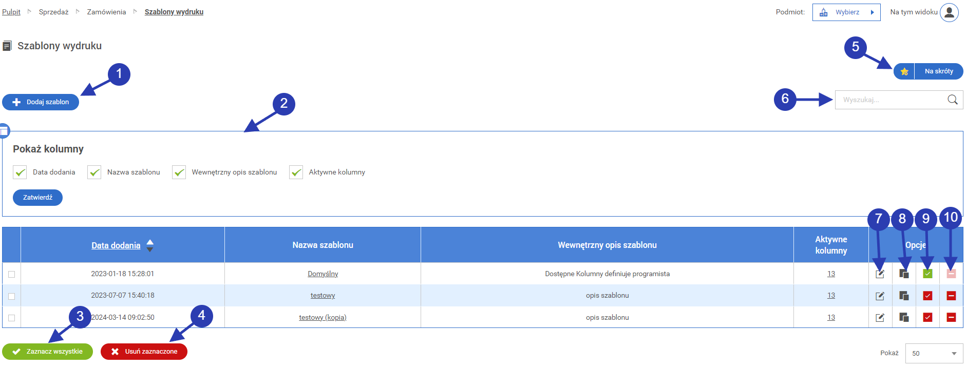 • 1.1. Szablony wydruku