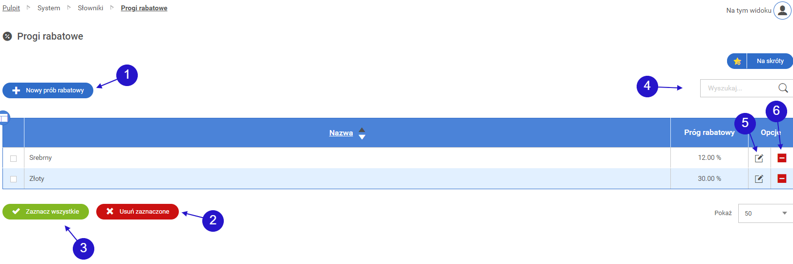 • 1.3. Ekran edycji istniejącego progu rabatowego
