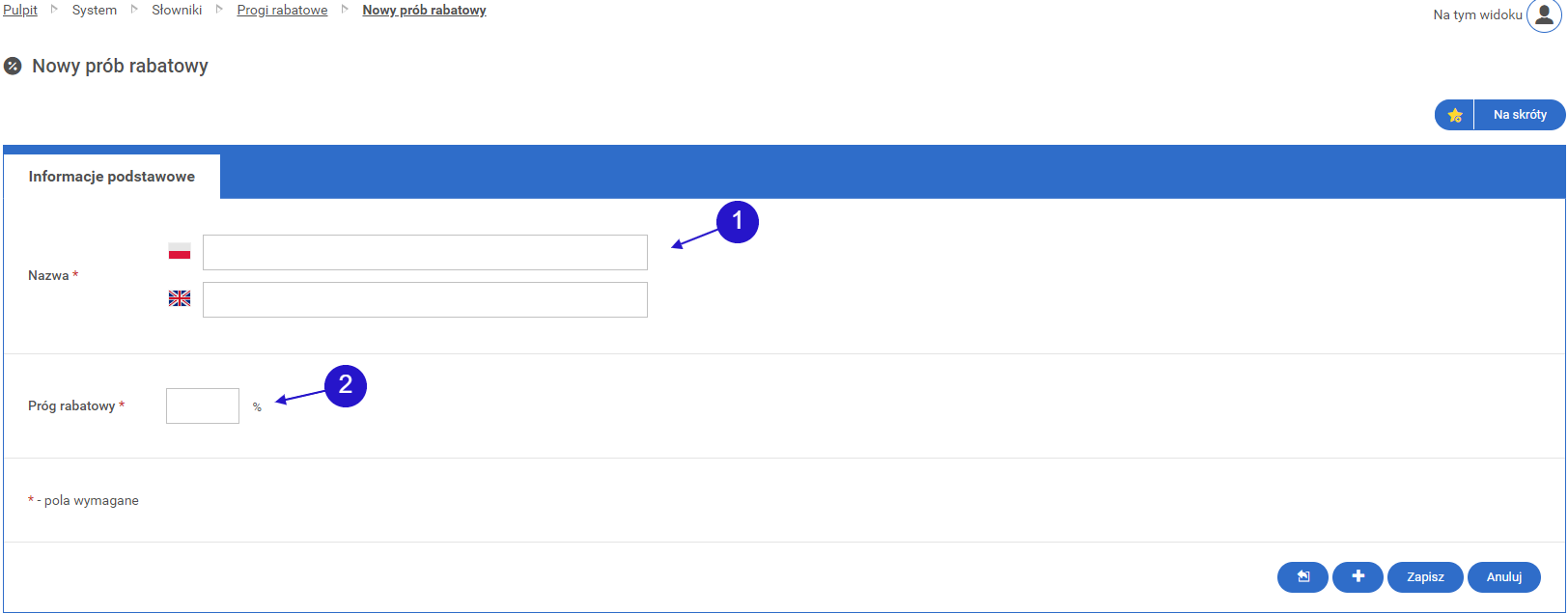 • 1.2. Ekran tworzenia nowego progu rabatowego